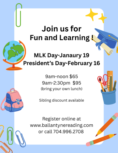 Check out the latest Specials and Events at Ballantyne Reading Academy for the Very Young!
