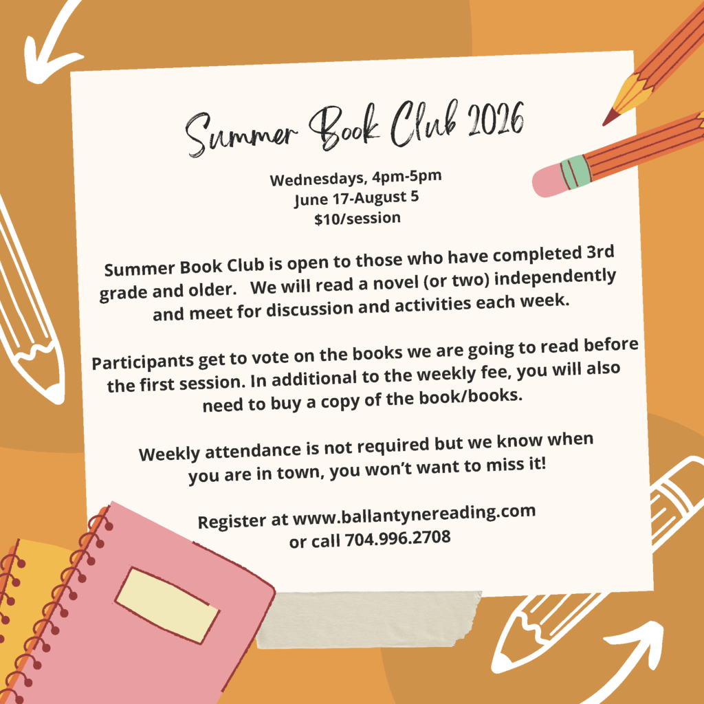 Just because school is out does not mean the fun and learning has to stop!  This holiday season Ballantyne Reading Academy will be offering “mini camps” December 27-29.  Like our summer camps, these holiday camps will provide literature-based activities, games, storytelling, and songs with hands-on materials to expand pre-reading, reading and language skills.